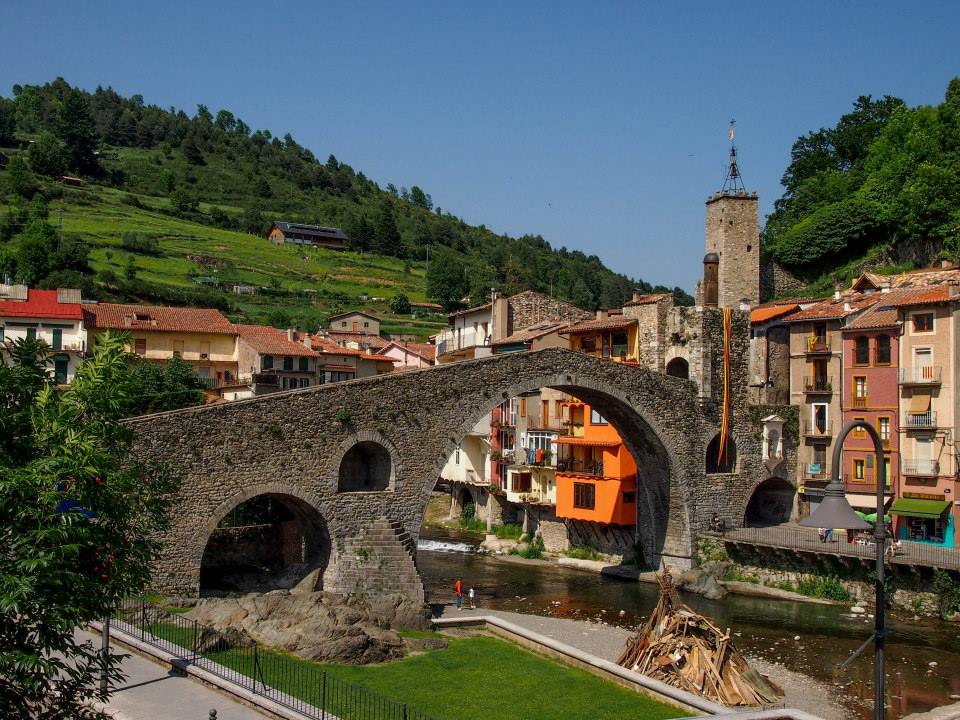 Camprodon es un municipio de la comarca del Ripollès, en la provincia de Girona, a 988 metros de altitud. Destaca en su conjunto urbano el Pont Nou, puente medieval que cruza el río Ter. Del monasterio de Sant Pere solamente se conserva la iglesia gótica, del siglo XIV. Muy cerca del puente, en la calle que pasa bajo uno de sus arcos, se encuentra la casa-museo del músico Isaac Albéniz.